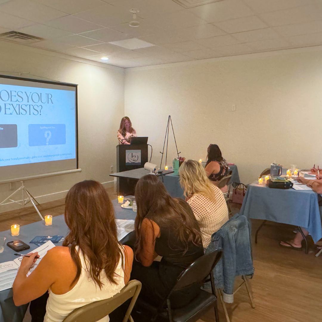 The studio transformed into a full on branding playground. With lights dimmed and candles lit for a small group hands on coaching atmosphere, participants created impactful content, sharpened their message, and even walked away with updated headshots in our Noir and Blanc studios shot by Monica from 1127 Creative Co.