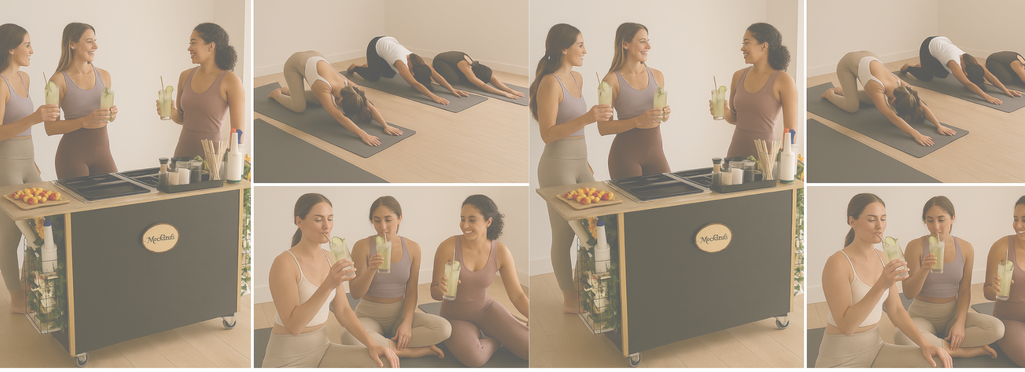 Before and after class, savor refreshing mocktails from the cart—light, flavorful, and alcohol-free (BYO liquor if you’d like to spike your drink!). Fruit skewers and light snacks will also be available to enjoy as you mingle and unwind.